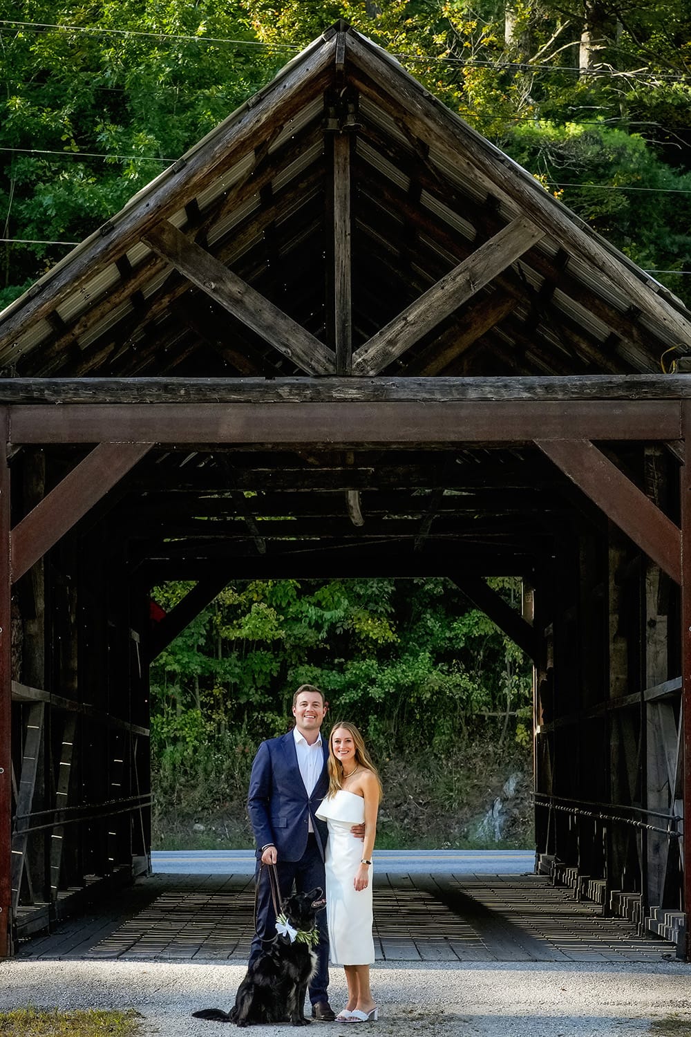 My weekend started on Friday afternoon with some portraits of Karr and Lisa and their sweet pup, Olive. We hit up a few favorite spots around the venue including the covered bridge, the vast ceremony field, and the adirondack chairs (I made sure to include the New York sign – where Lisa and Karr currently live). We also took a bunch of photos with the hydrangeas as they have a special meaning to this couple – Karr gave Lisa hydrangeas when they started dating. I love including little personal touches like this during portraits.