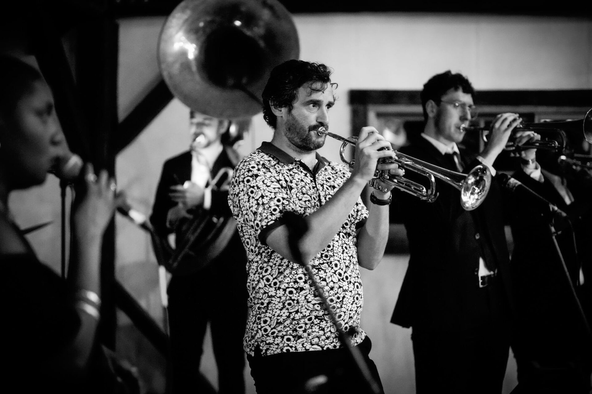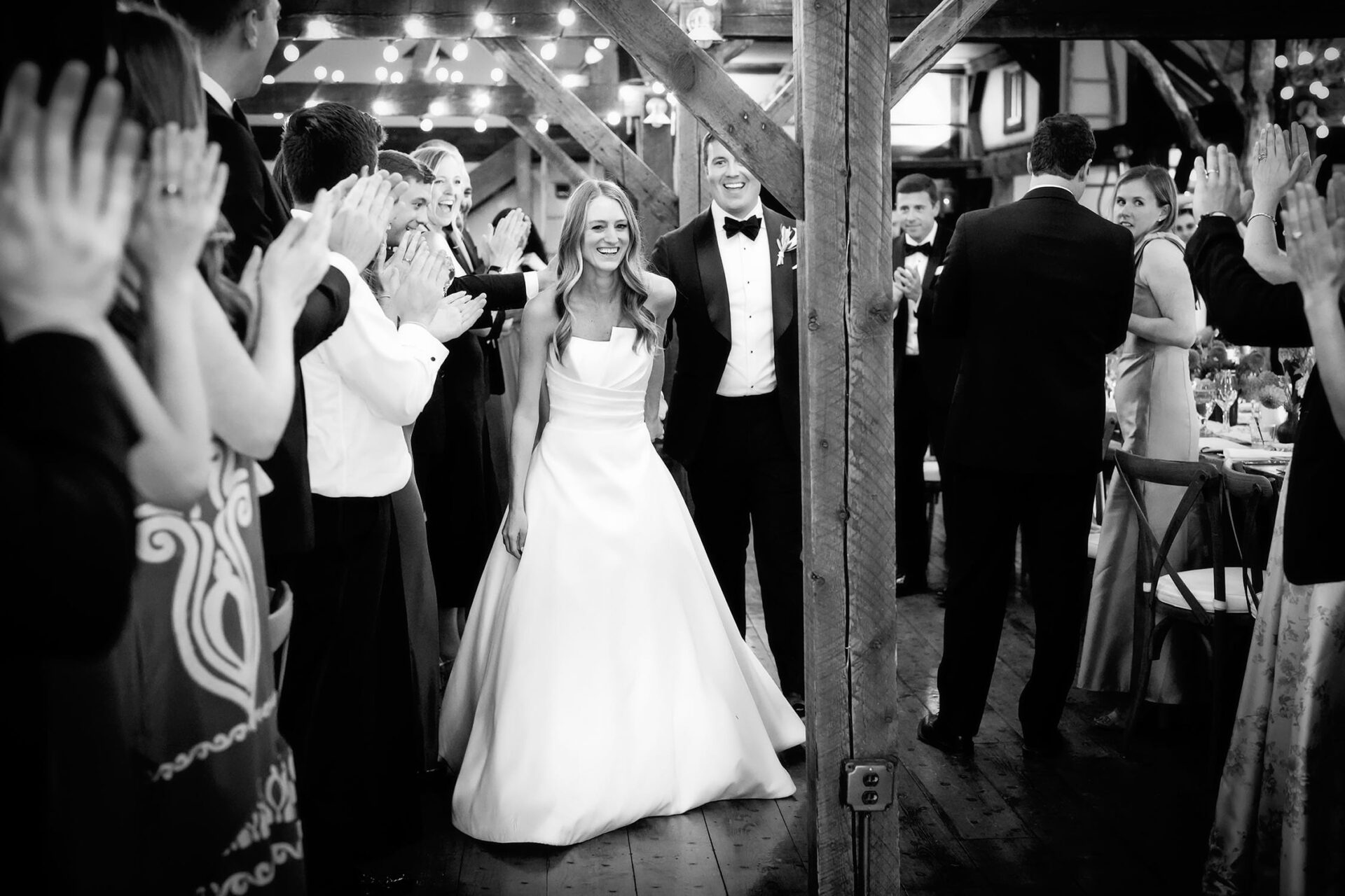 After the ceremony was one of my very favorite things about this wedding: Lisa and Karr had a second line parade to cocktail hour, led by their amazing band. It was so cool! I absolutely love when couples think outside the box to make a really unique and fun experience for their guests. They also extended cocktail hour which was wonderful. I had tons of time to get plenty of guest candids, a few more couples portraits, the details in the barn … I highly recommend doing this if you have a venue where it makes sense!