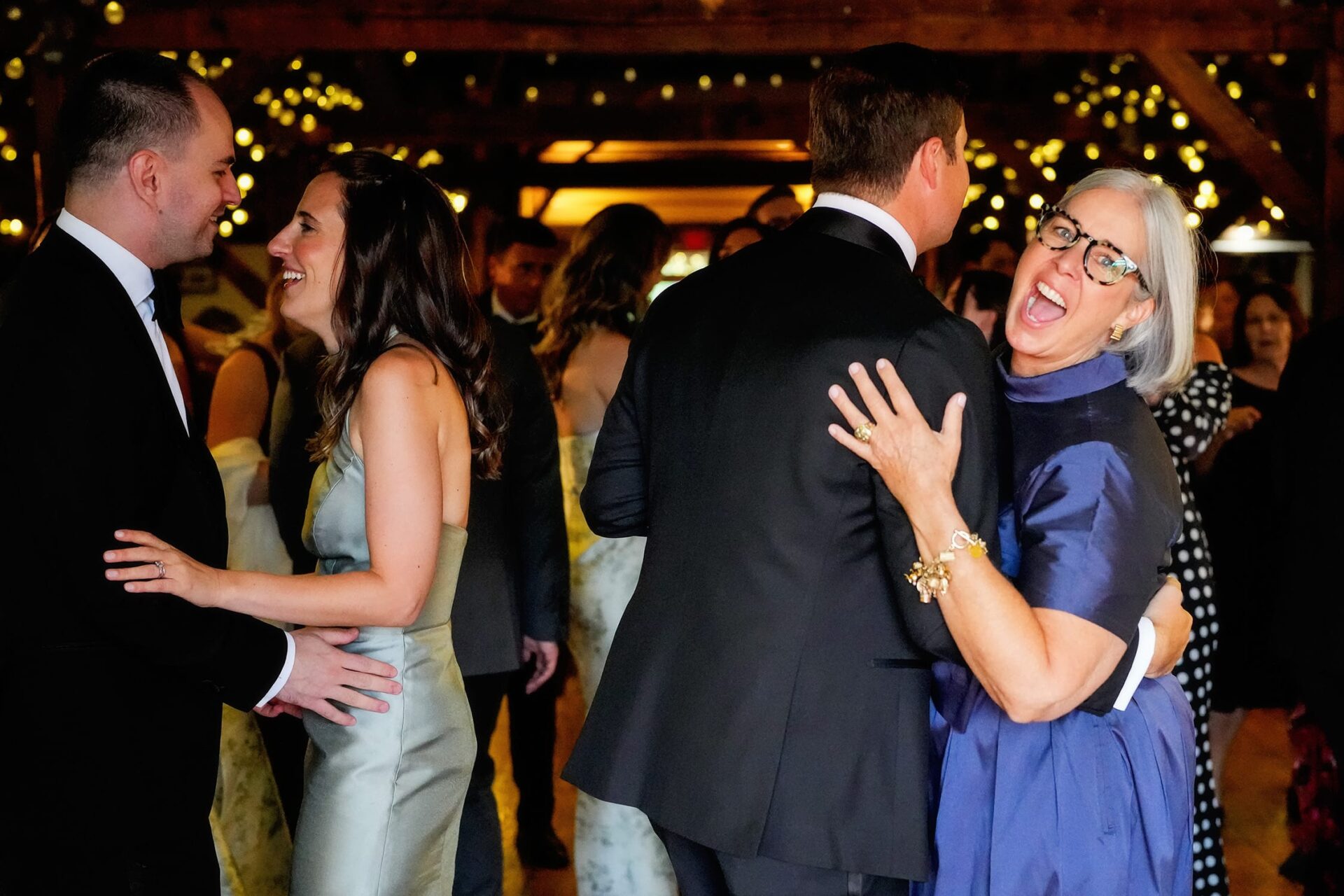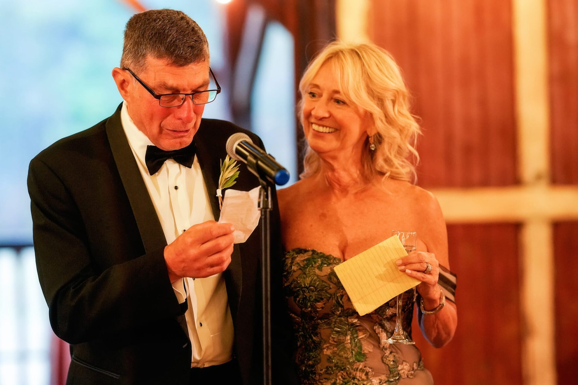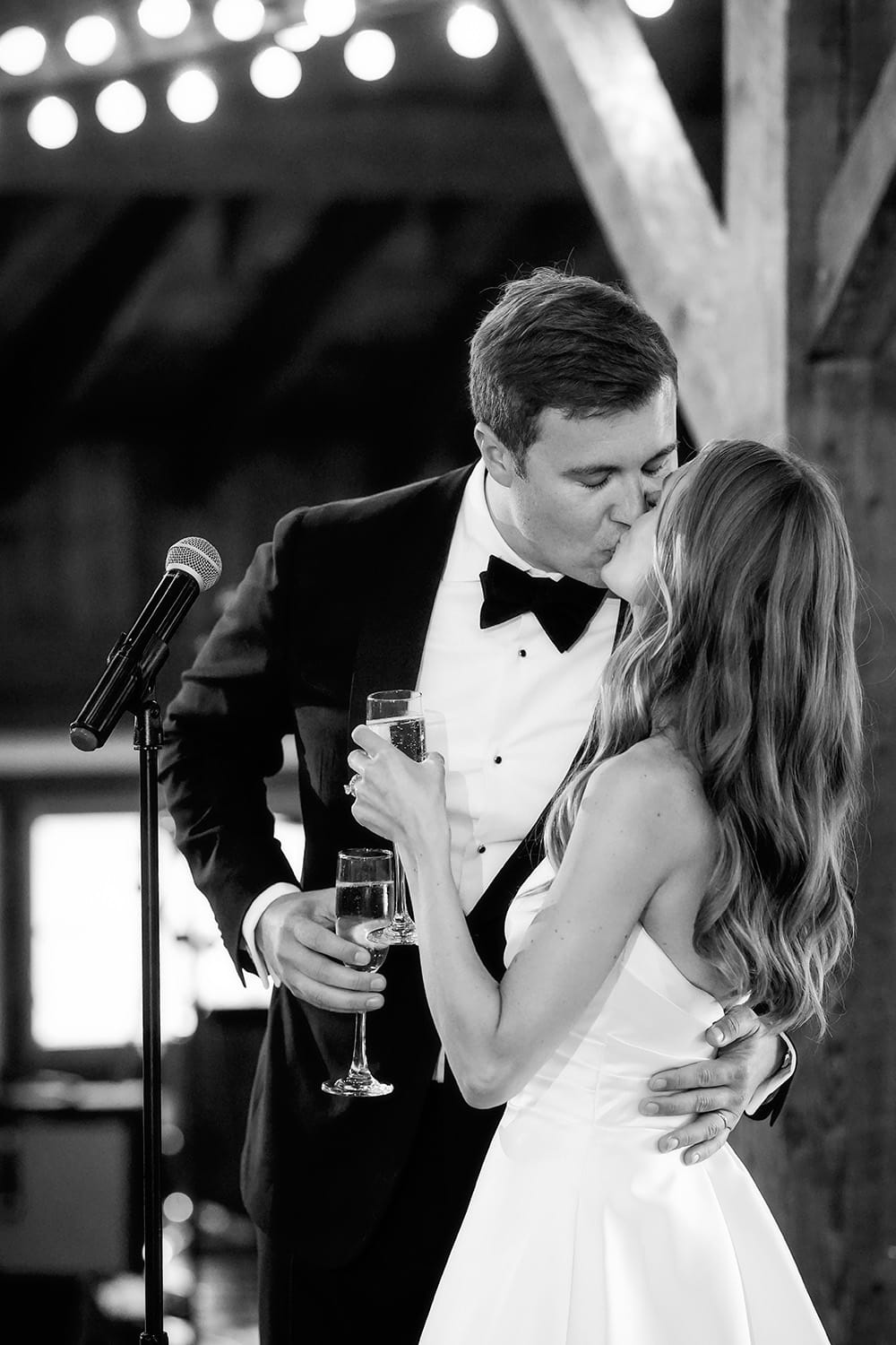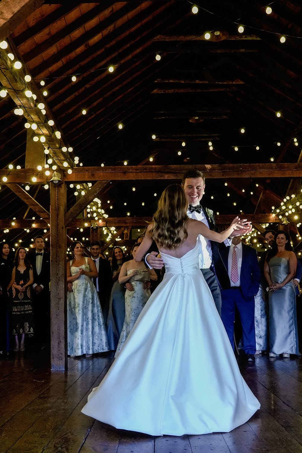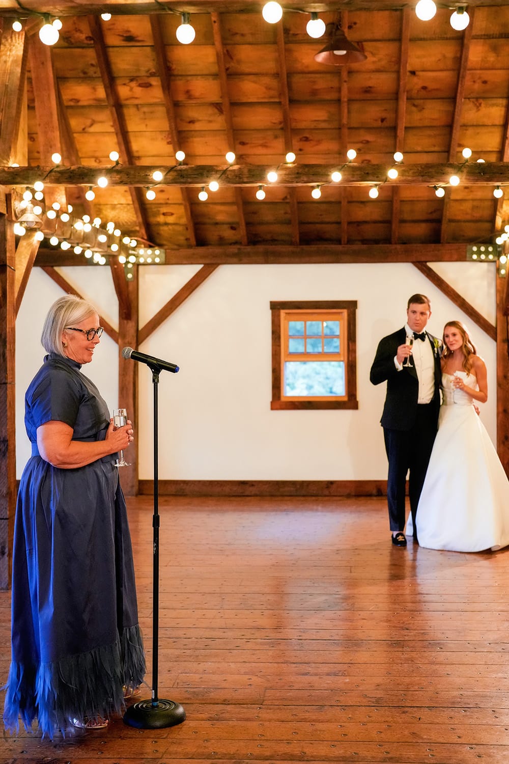 The reception was held inside the brown barn, and it was simply – but beautifully – decorated. The couple went straight into their first dance, then there were wonderful emotional toasts by Karr’s mom, and Lisa’s parents. Then it was time for an incredible dinner, followed by parent dances and dancing.
